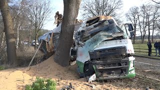 Huntlosen: Lkw prallt gegen Baum – Fahrer schwer verletzt